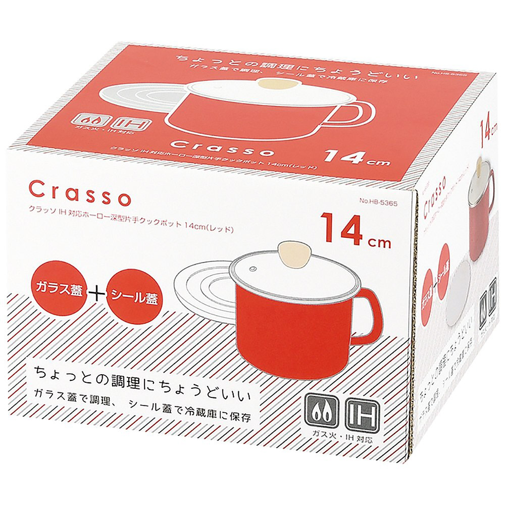 クラッソ IH対応ホーロー深型片手クックポット 14cm レッド HB-5365