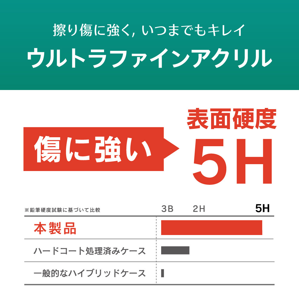 ・しなやかな素材で衝撃を吸収・落下時も安心の衝撃吸収ケース・表面硬度5H、傷に強い特殊樹脂を採用