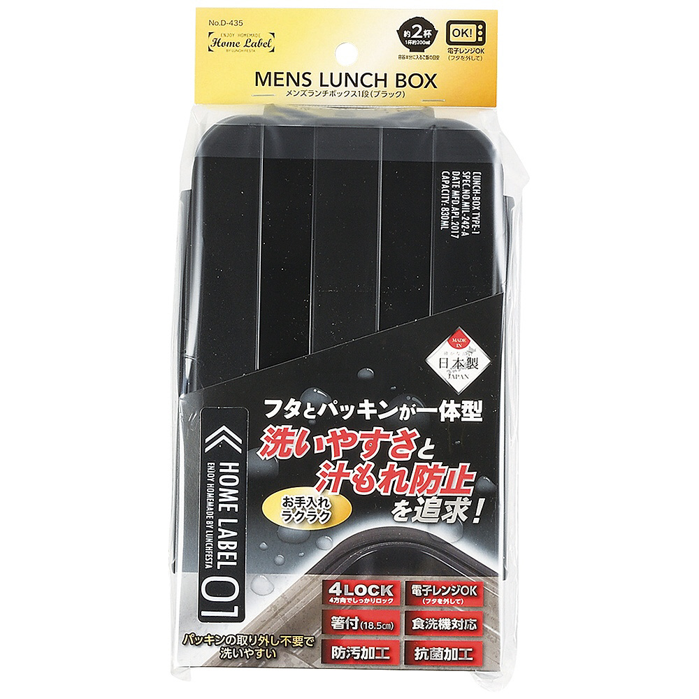ホームレーベル メンズランチボックス1段(ブラック) D-435 [食洗機対応]