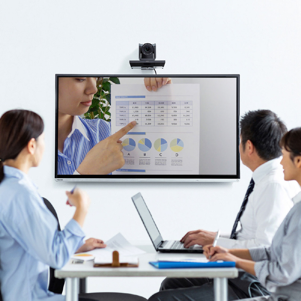 ビデオ会議に最適な光学10倍ズーム搭載でリモコンで首振りできる会議用カメラ。