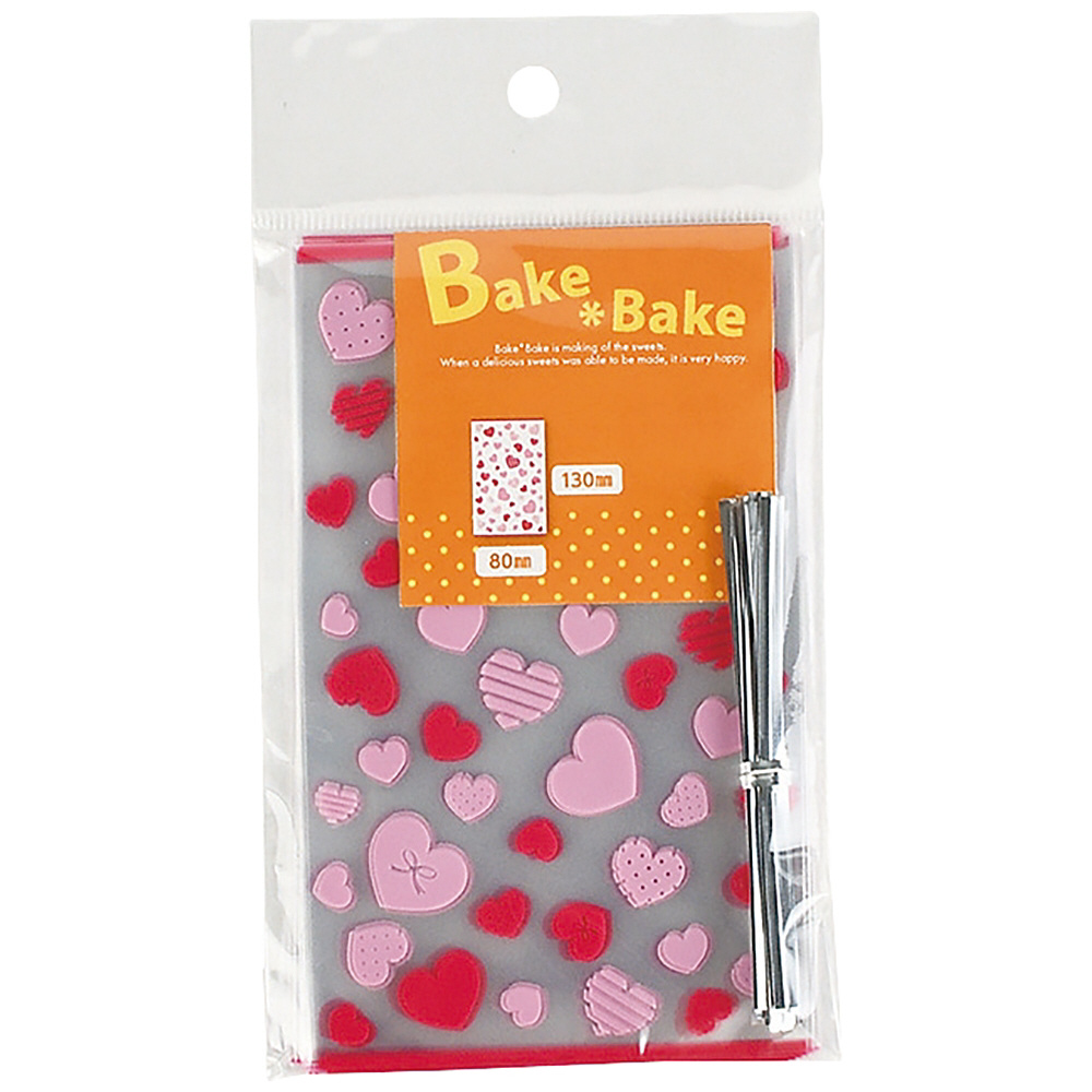 ベイクベイク お菓子袋S16枚入レッドハート D-6426