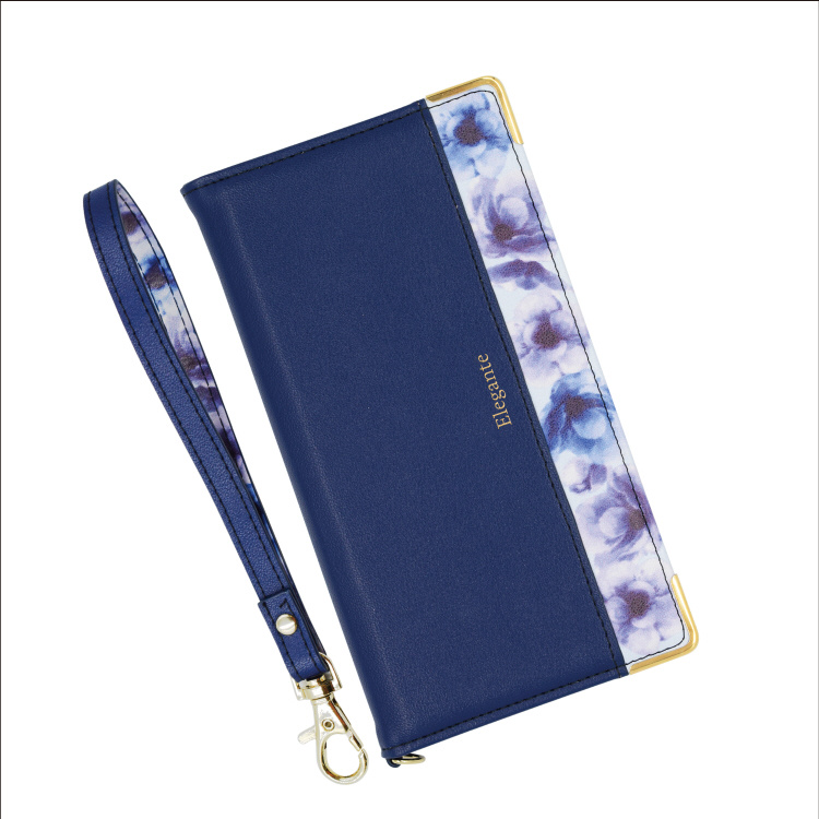 11 Pro Max対応 手帳型ケース エレガンテ フラワー ネイビー