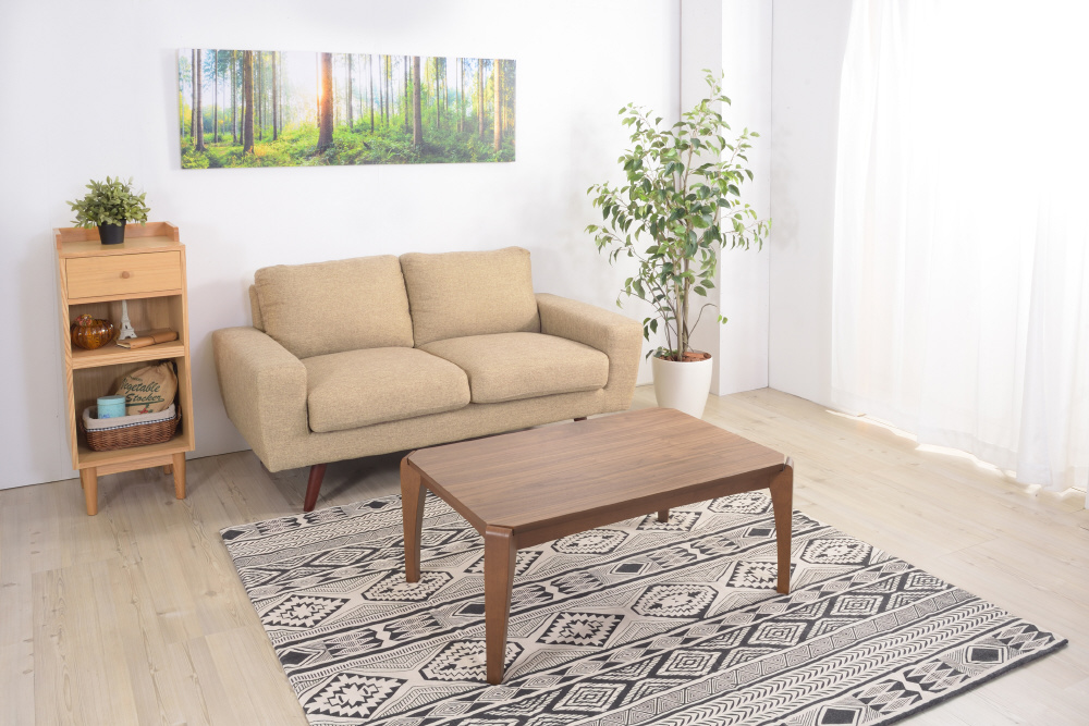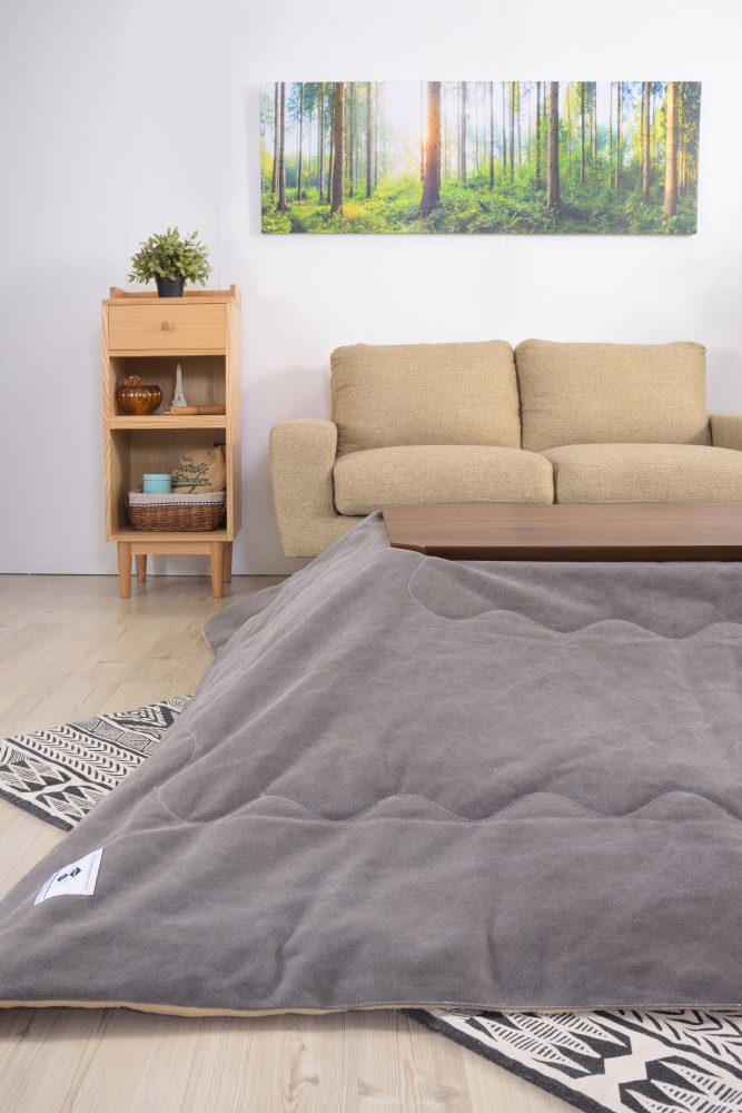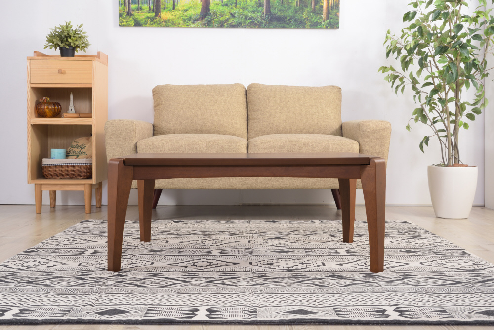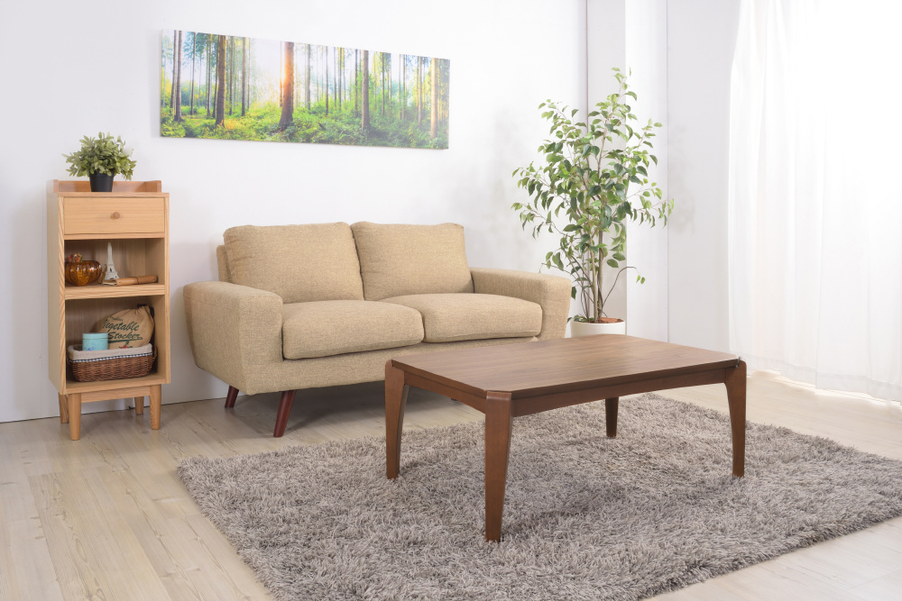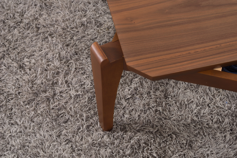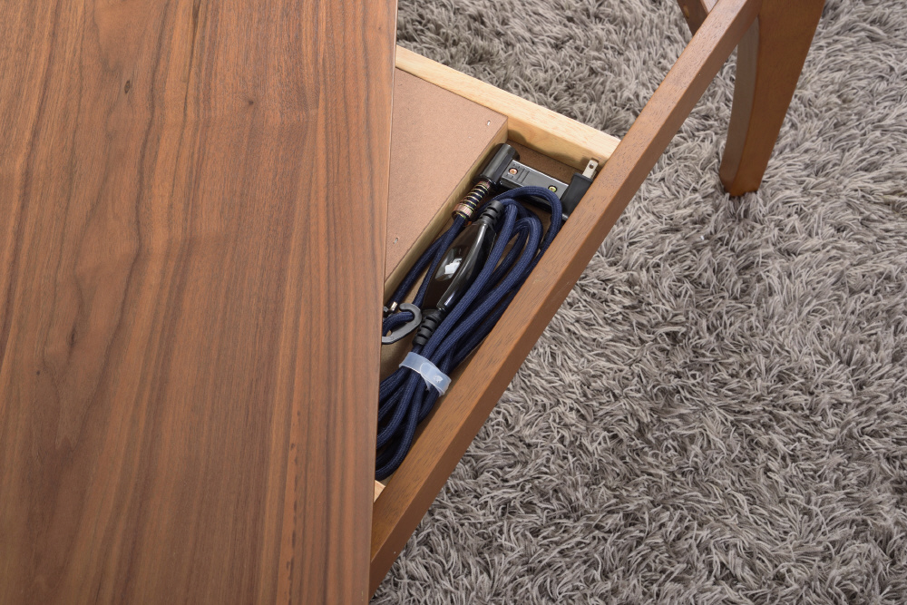 天然木の深みのある風合いが上品な印象のコタツテーブル。寒い季節はコタツテーブル、暖かい季節はリビングテーブルと一年中使えるテーブルになります。遠赤外線を放射する石英管温風ヒーターは、温まるのに少し時間はかかりますが、体の芯からポカポカ暖めてくるタイプのコタツになります。電源のON/OFFはコタツの外、温度調節はコタツの中についている中間スイッチ式。外に出ているスイッチがシンプルです。
