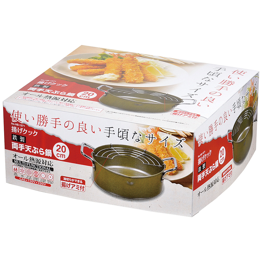 揚げクック 鉄製両手天ぷら鍋 20cm HB-1371 [IH対応]