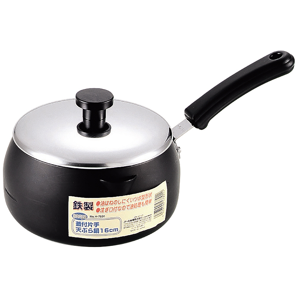 ブレイブ 鉄製蓋付片手天ぷら鍋16cm H-7891 [IH対応]