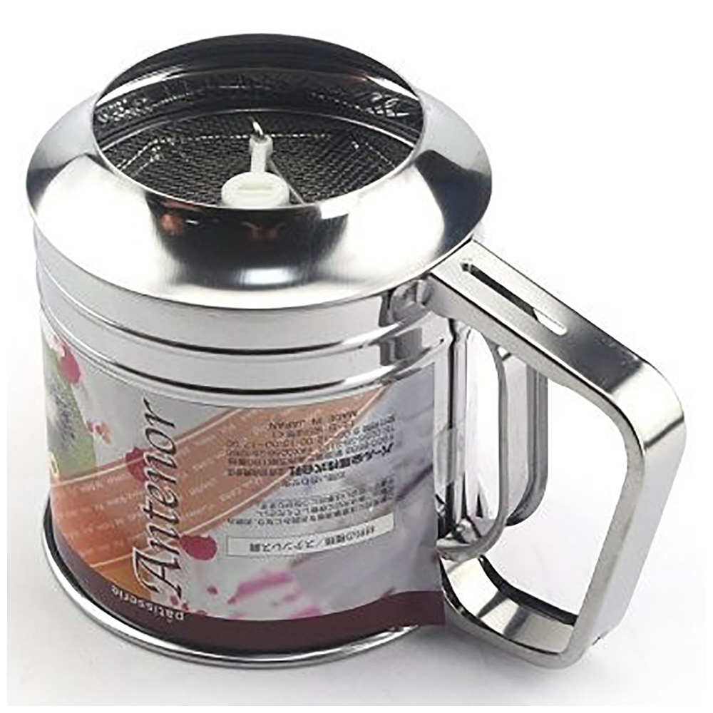 手持ちサイズのふるいです。振らずにグリップを握ったり放したりしてふるえます。
