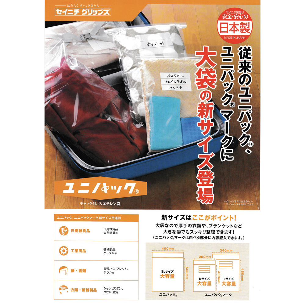 ■従来のユニパックに大袋の新サイズ。