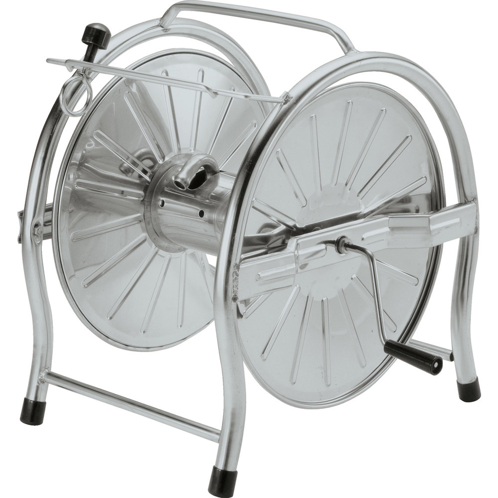 丈夫で傷がつきにくく、サビに強いステンレス製ホースリールです。