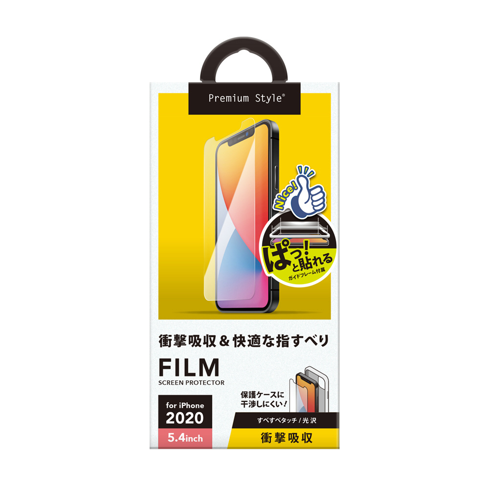 衝撃とキズから画面を守り、液晶画面に加わる衝撃を吸収する光沢タイプの2020年 iPhone5.4inch用の液晶保護フィルムです。かんたんに貼れるバブルブロックタイプ。液晶画面を衝撃から守り、液晶割れを防ぐ効果があるのでスマートフォンを落として割ってしまうのではないかと心配されている方にオススメです。フィルムを貼るのに便利なガイドフレーム、ヘラ、クリーニングクロス、ほこり取りシールの「貼り付けキット」が付属しています。