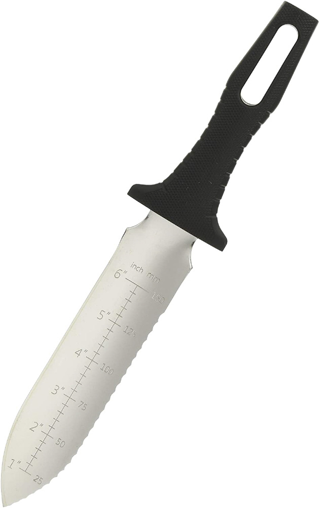 ■深く根を張った地面でも掘り進められるシャベル型の刀身をしており、この一本で殆どの園芸作業を担うことができます。