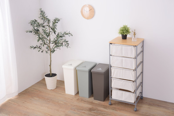 しっとりと落ち着いた、ツヤ消し・マットなカラーの3色展開。BR(ブラウン)、GR(グリーン)、WH(ホワイト)の人気の高い色をラインナップ。GRは“グレー”に近い色合いなので、オフィス等のフォーマルな場所でも違和感なくお使いいただけます。トラッシュカンのラベルは海外からの輸入品を思わせるデザインに仕上げてますが、おしゃれなデザインと共に、品質面もしっかりしているので安心です。