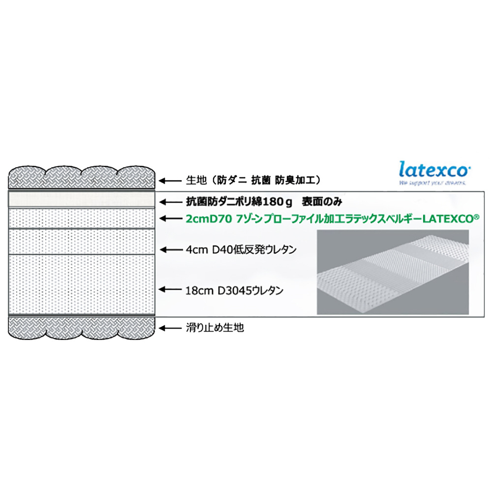 抗菌、防臭、防ダニで衛生的に。フィット感が高いウレタンのクッションで、包み込んだような寝心地を。