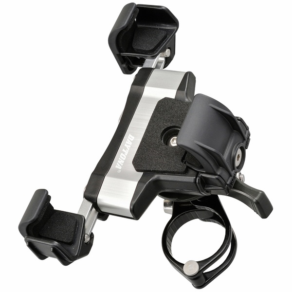 初めにサイズを確認・調節しておけばスマートフォンを挿入するだけでガッチリフィット。3つ爪仕様なので横ボタンがセンタータイプのスマートフォンにも対応。