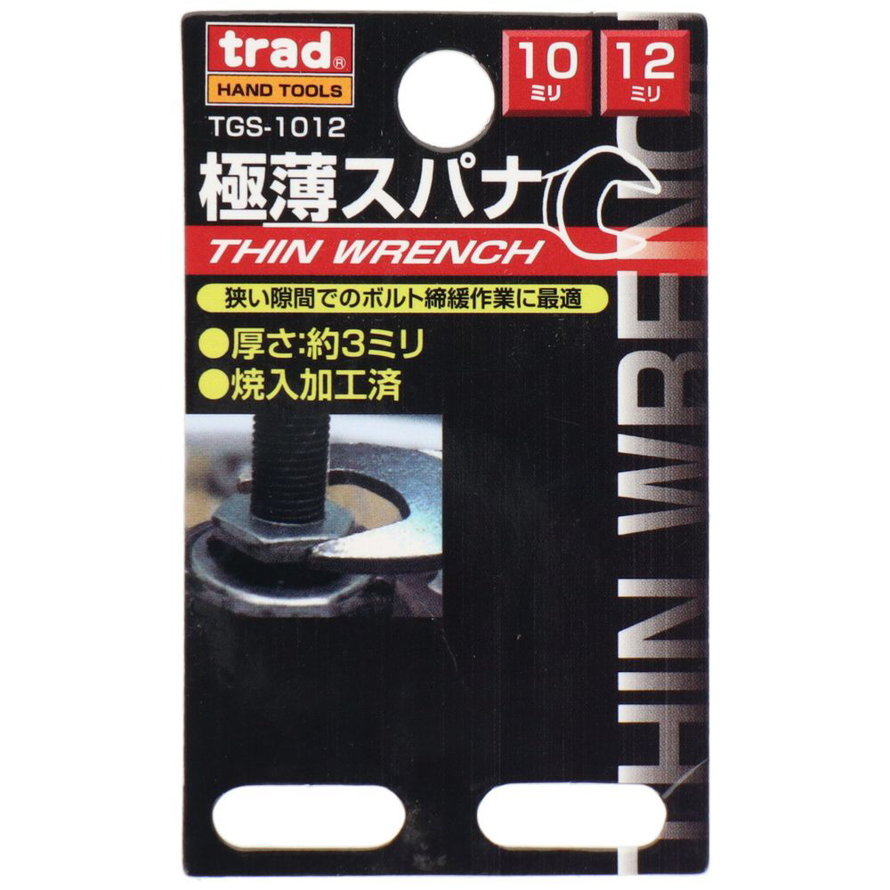 ●厚さ約3mmでキャスターなどのボルト回しや、通常のスパナの入らない箇所に便利です。
