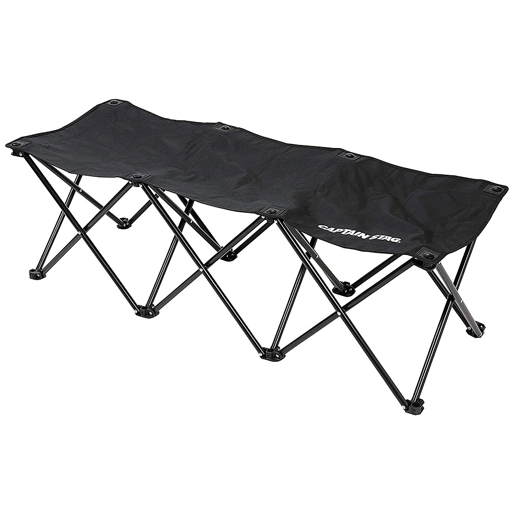広げるだけで簡単に組み立てができる3人掛けベンチです。座りやすい奥行きのある座面サイズです。どの向きからでも座れるように設計しています。2人で使えば荷物も置けます。コンパクトに収納でき、バッグ付きで持ち運びもラクラク。