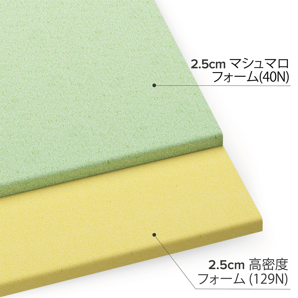 【マットレス】ジヌスベーシック GreenTea 低反発マシュマロフォームトッパー 5cm ZJ-TPMG-02SD [セミダブルサイズ]