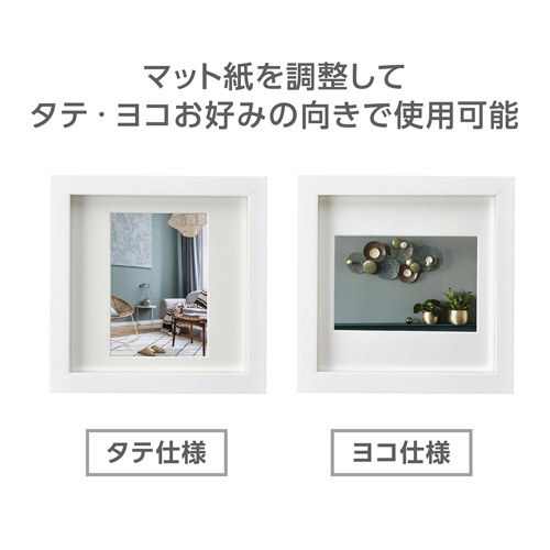 スクウェアタイプの額なので、マット紙の向きを変えればタテ・ヨコどちらの向きの写真にも対応します。
