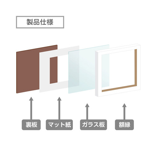 落ち着いたカラーリングと直線的でシンプルな額縁のデザインで、お部屋のコーディネートに合わせやすいスクウェア額縁です。