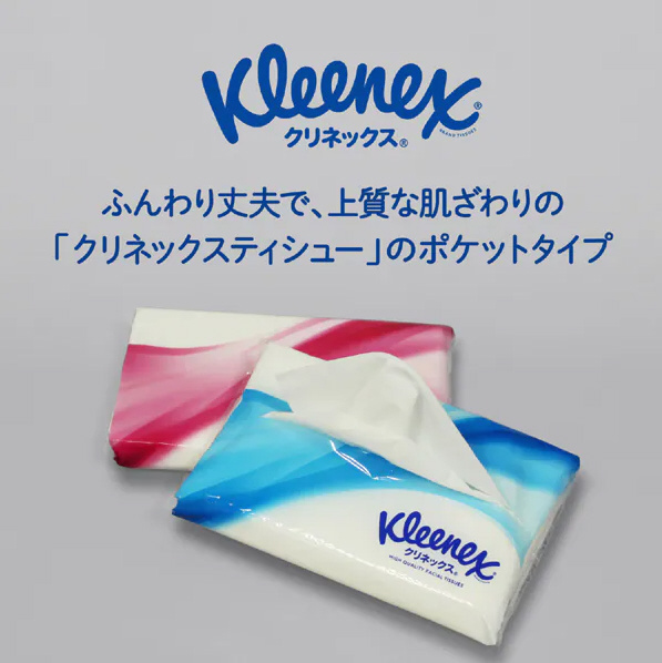 ふんわりなめらかな肌ざわりのクリネックスティッシューを携帯できるポケットタイプ