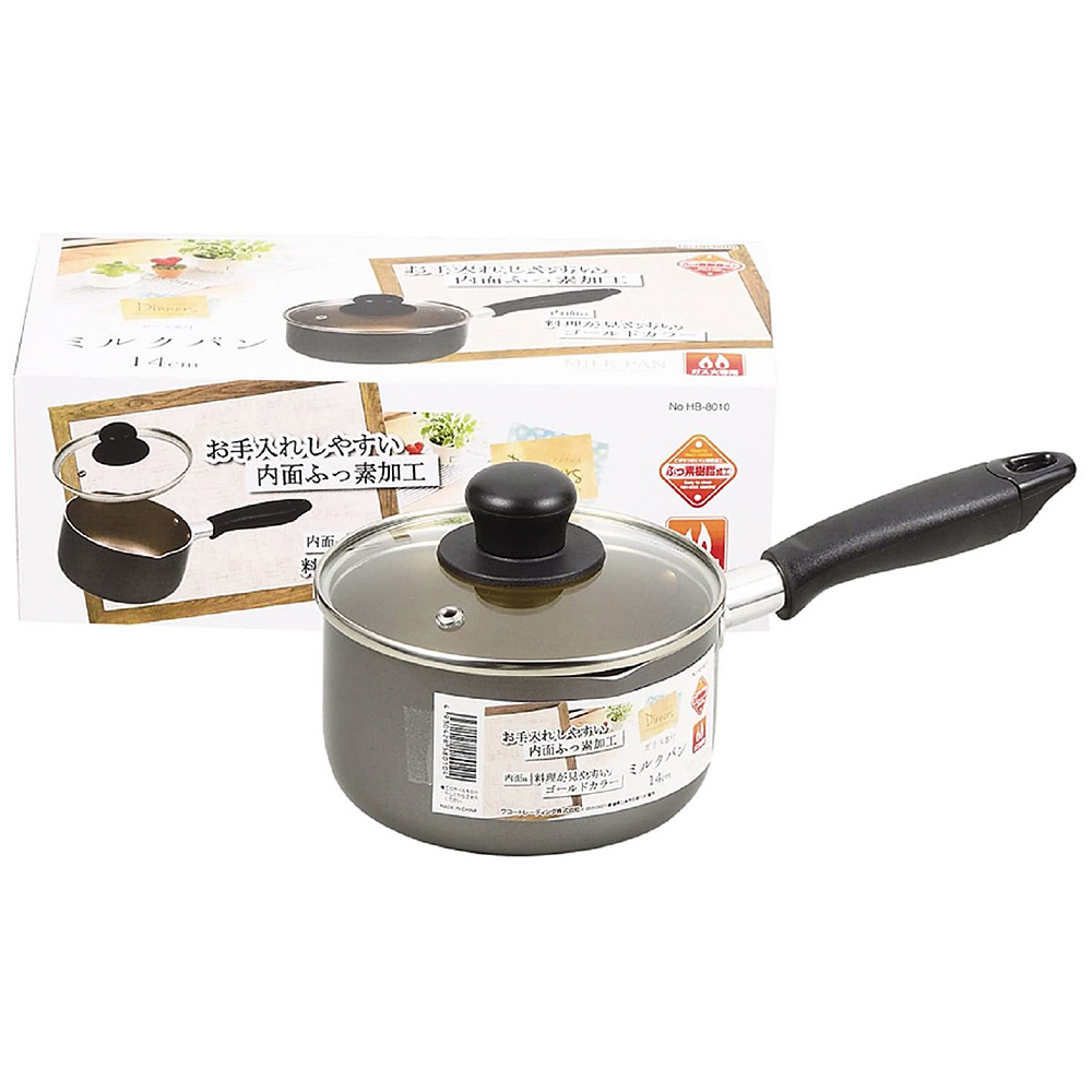 ディナーズ ふっ素加工ガラス蓋付 ミルクパン 14cm ガス火専用 HB-8010