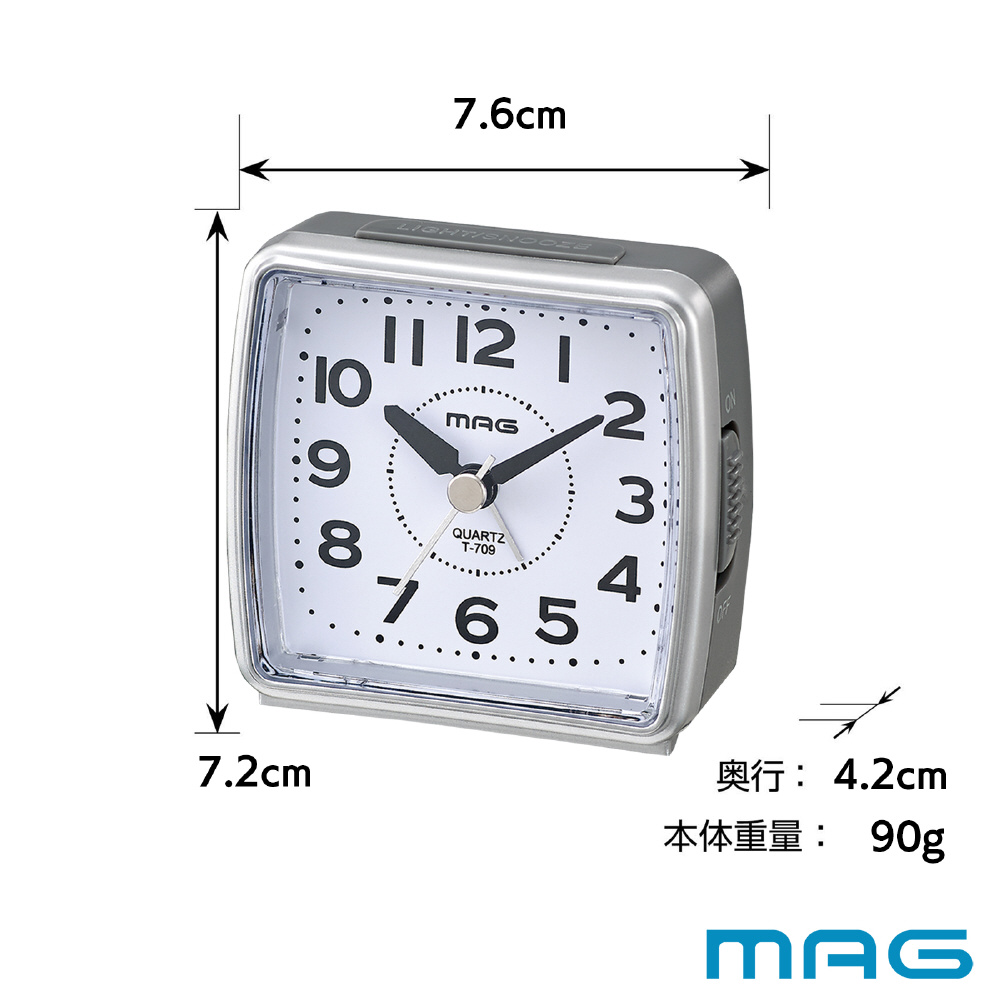 寝室はもちろん、旅行や入院時の卓上時計としても便利です。