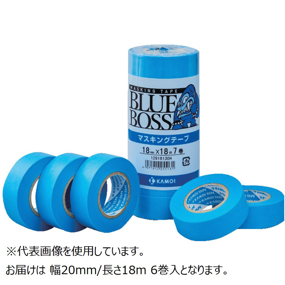 マスキングテープ塗装用 6巻入(幅20mm/長さ18m) ブルー BLUEBOSSJAN-20