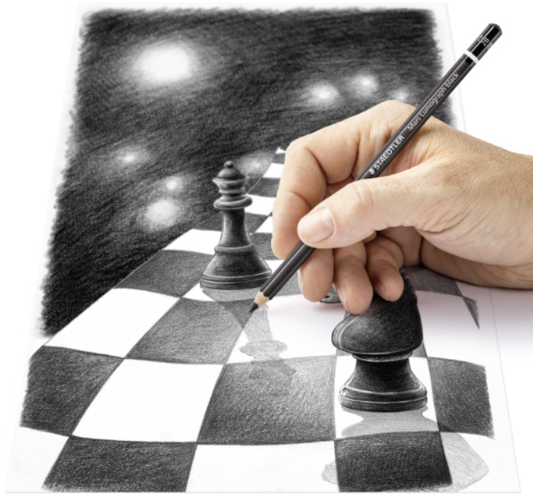 カーボンを多く含む芯のため、マットな質感で濃く黒く描けます。紙への定着がよく、ほどよい硬さがあり芯粉が出にくいため紙面を汚しません。描画やハッチング、スケッチ、肖像画などの表現に最適です。