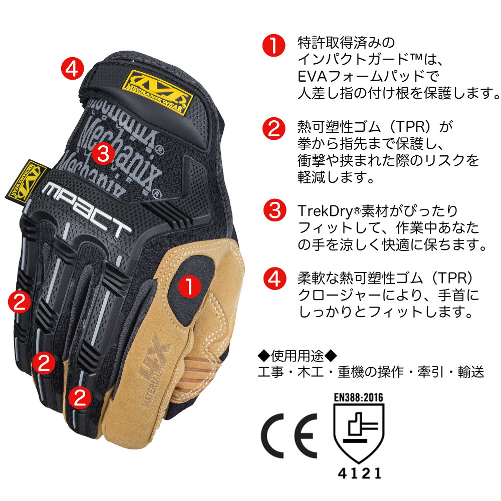 ■EN388規格: 耐摩耗レベル4、耐切創レベル1、耐引裂レベル2、耐突刺レベル1