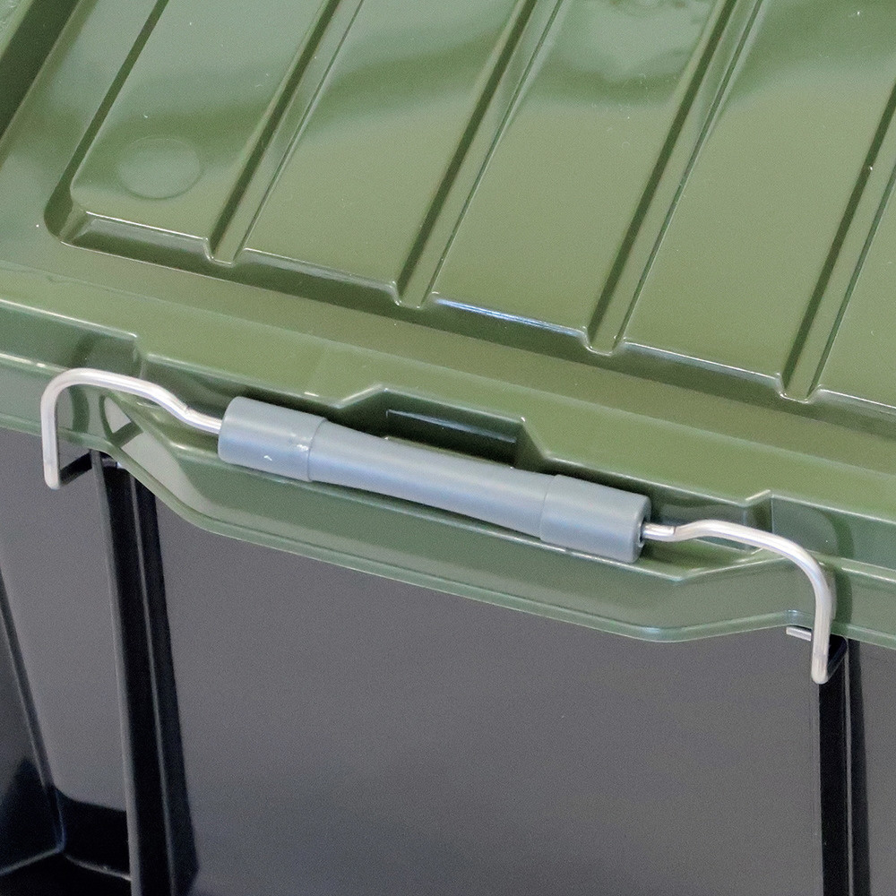 ■工具類やアウトドア収納に便利なバックル蓋付きコンテナです。