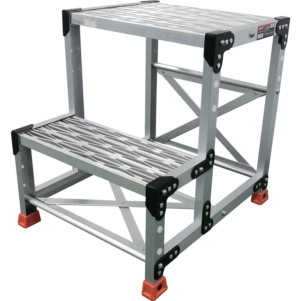 TRUSCO 作業用踏台 アルミ製・グレーチング仕様 SUS金具 2段 高さ0.6m 天板500×400 TSFGR-256
