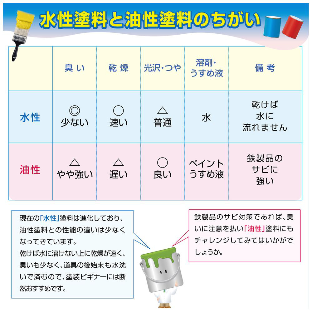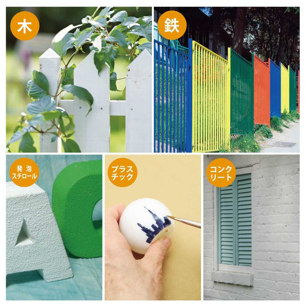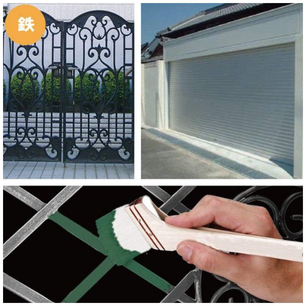 ●防サビ配合だから鉄部をサビの発生から守ります。【用途】木部・鉄部・プラスチック(一部を除く)・発泡スチロール・コンクリートなど【塗れないもの】自動車、バイク、高級家具、床面、ビニールクロス、常に水に浸かっている所、鉄以外の金属(ステンレス、アルミ、メッキ、真ちゅう、銅、ホーロー)、タイル、化粧板、陶器、ポリカーボネート、ポリエチレン、ポリプロピレン、シリコンなど特殊処理された素材