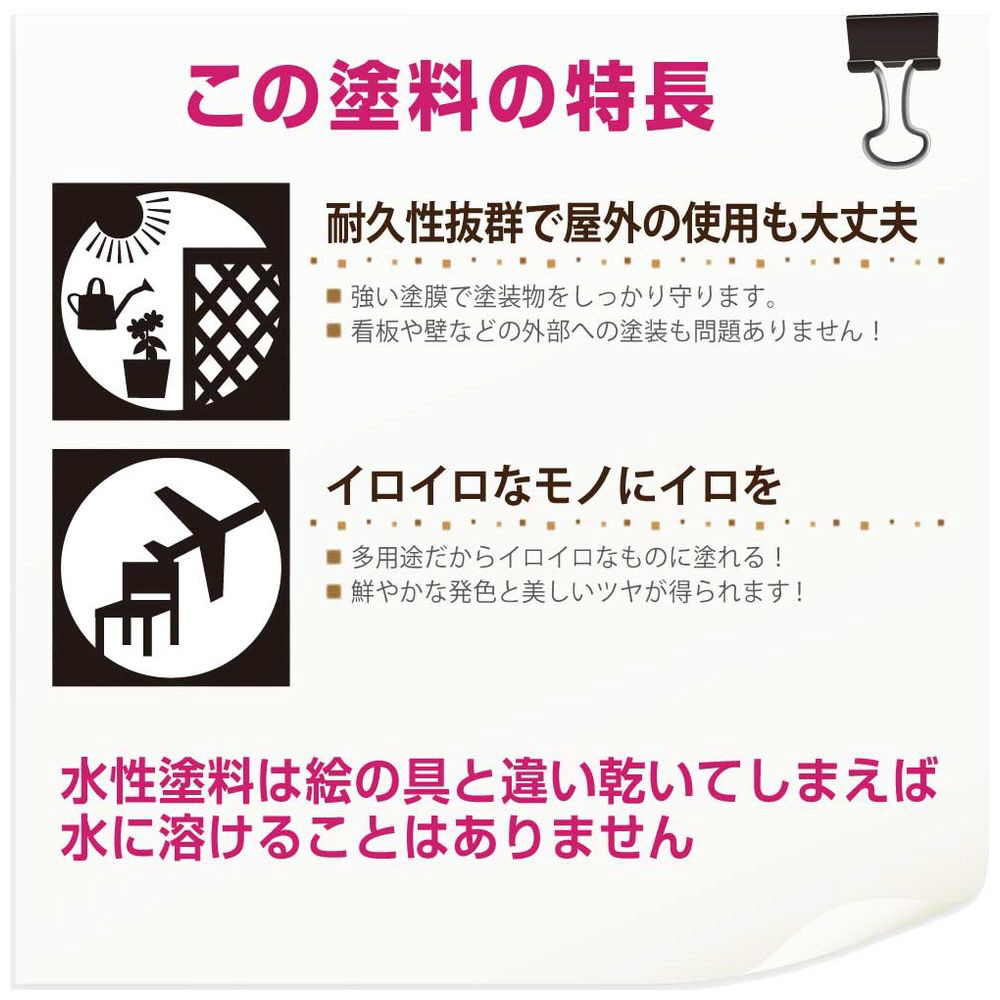 ●臭いが少なく、乾燥も速く、使いやすい水性タイプ。※乾くと雨や水で流れ落ちる事はありません。