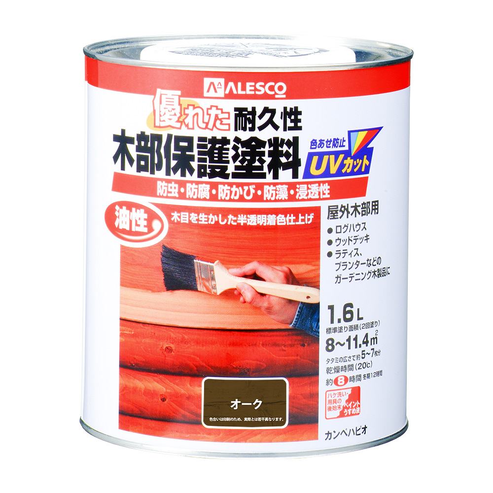 ●浸透性に優れ、耐久力が高い油性タイプ。保護効果が高いので傷みやすいウッドデッキや木製外壁などに適しています。【用途】屋外の木部(ウッドデッキ ラティス パーゴラ ベンチ ログハウス 羽目板 板へい)【塗れないもの】吸い込みのない木材(プリント合板・デコラ板)、常に水に浸かっている所、犬小屋・鳥小屋※塗装後も保護成分の臭いが若干残りますので、屋内木製品の塗装には不向きです。