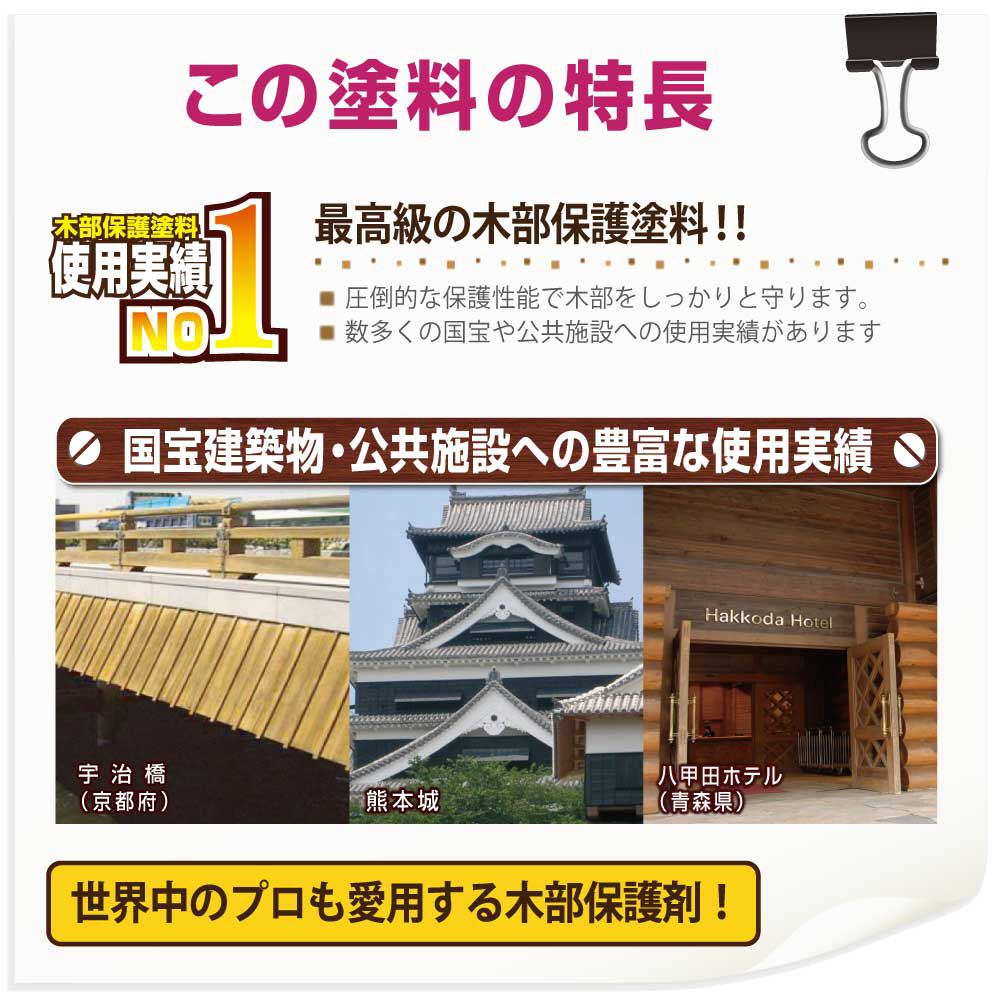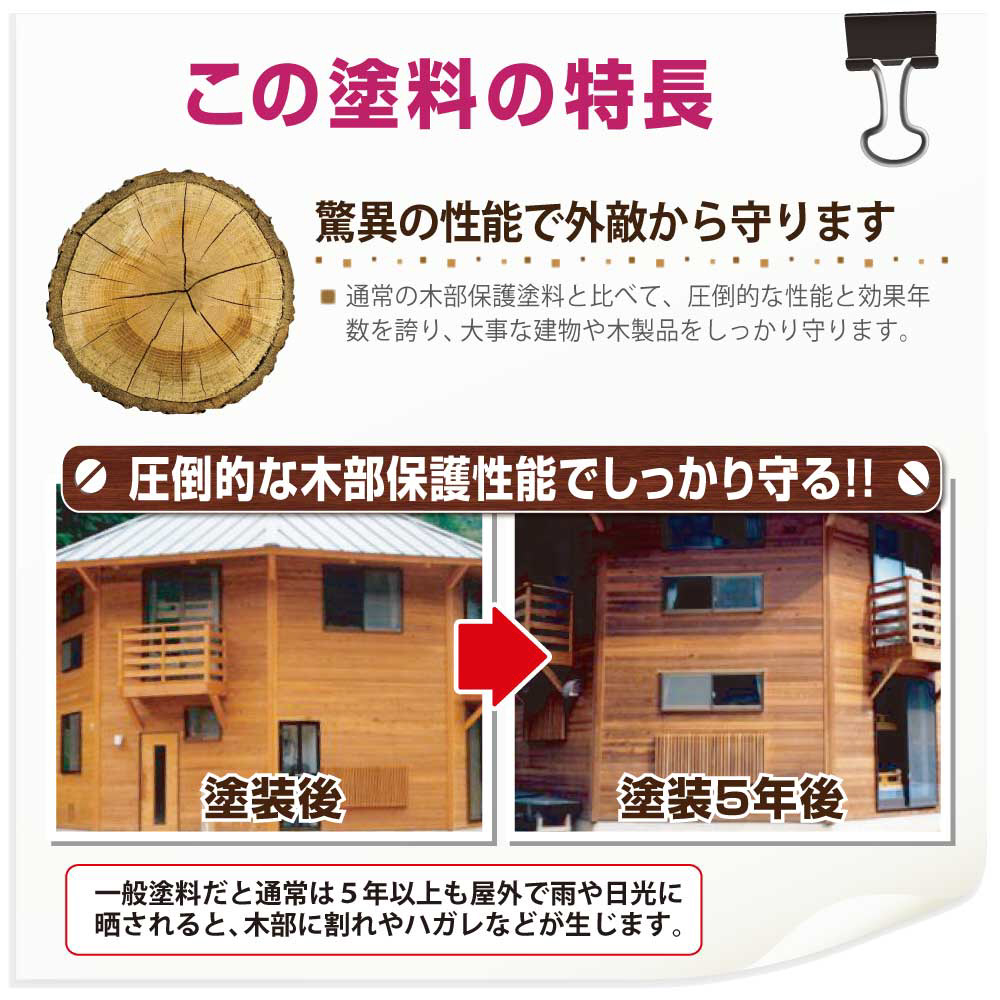 ●油性キシラデコールと同等の高い耐候性と保護性能を誇ります。
