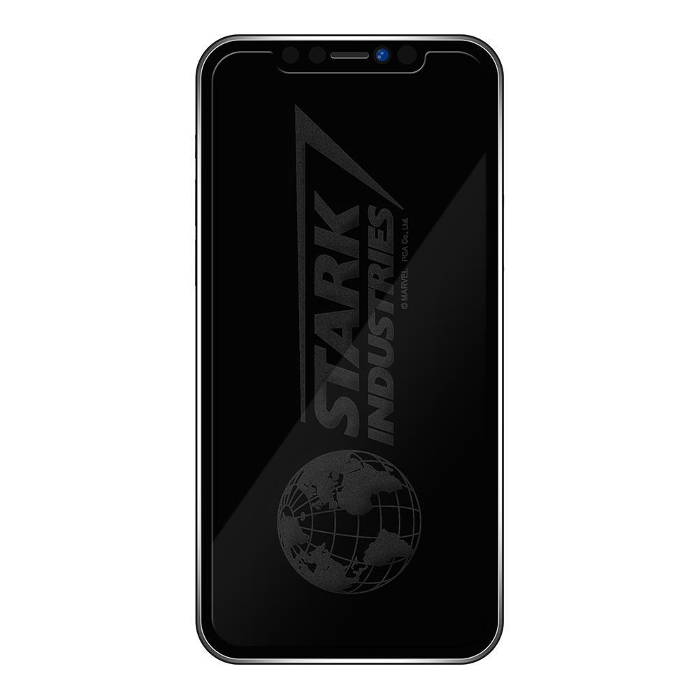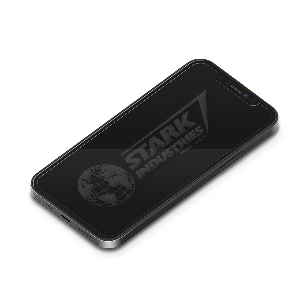 端末の液晶画面をOFFにする事でスターク・インダストリーズのデザインが浮かび上がるiPhone 12/12 Pro用の液晶保護ガラス
