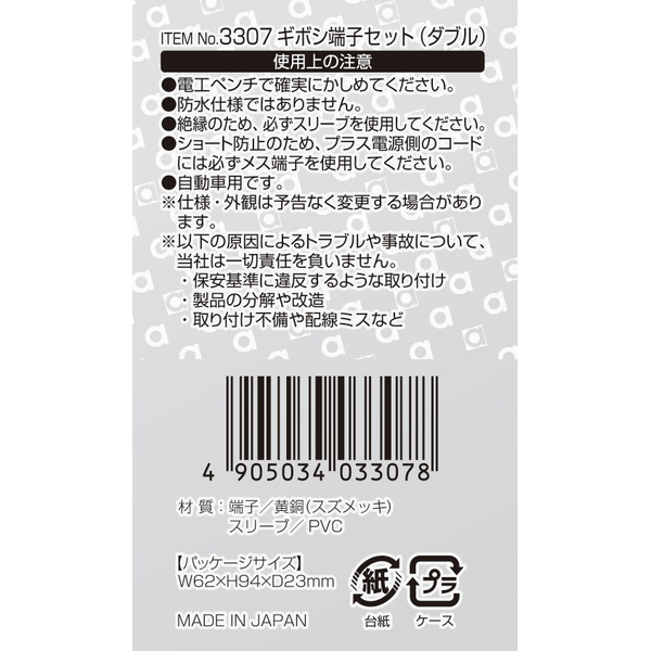 3307 ギボシ端子セット ダブル AV(S)0.5〜2sq/5セット 3307