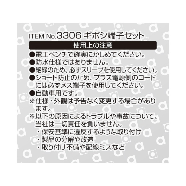 3306 ギボシ端子セット(後入れスリーブ) AV(S)1.25〜3sq/6セット 3306