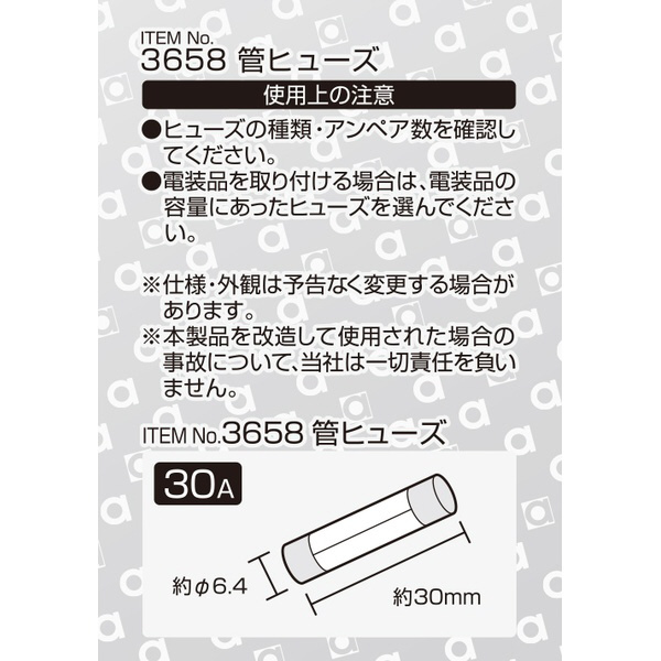 3658 管ヒューズ 30A (約φ6.4×長さ約30mm)/5本入り 3658