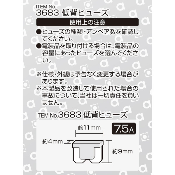 3683 低背ヒューズ 7.5A (約11×9×4mm)/5個入り 3683