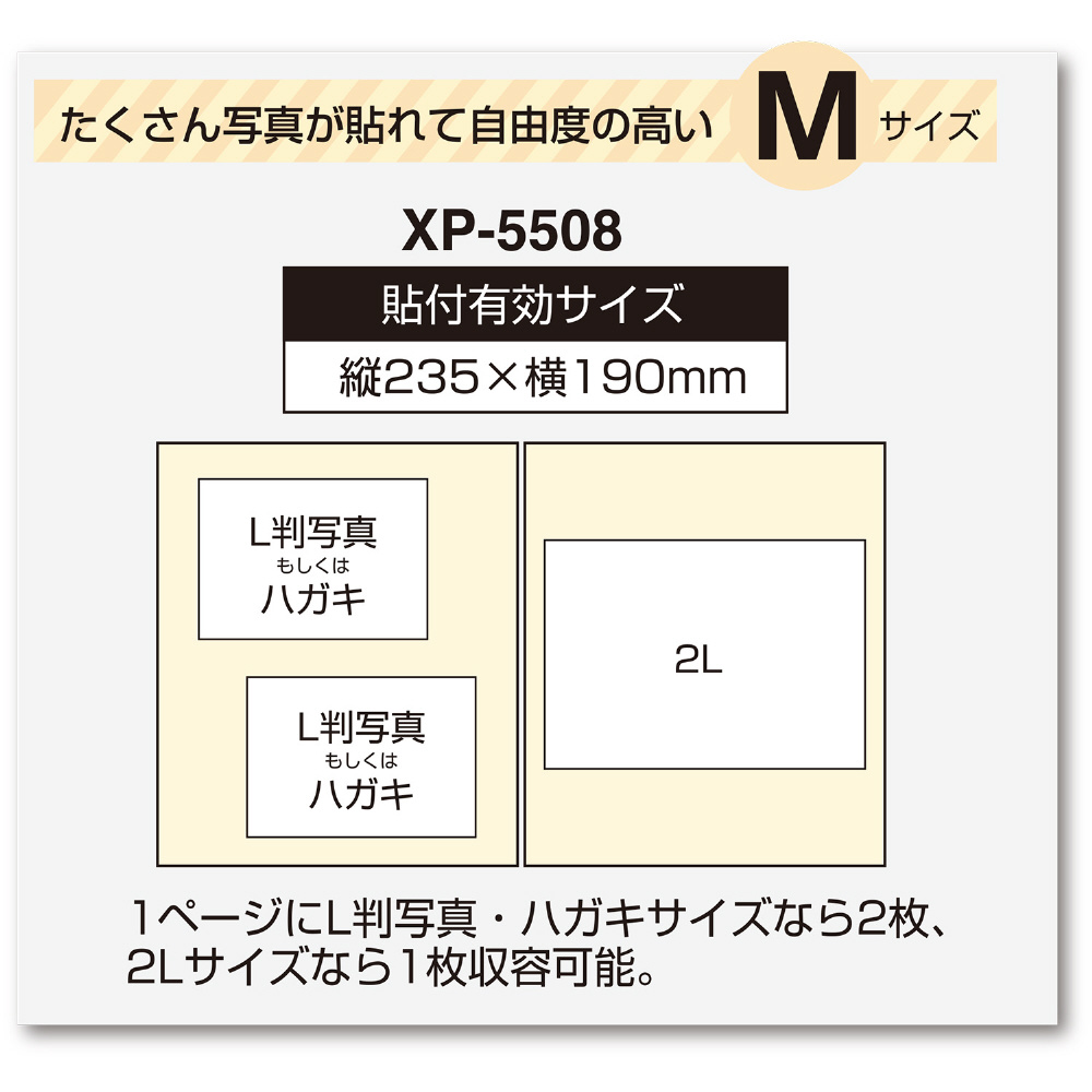 貼付有効サイズ:縦235×横190mm ※1ページにL判写真・ハガキサイズなら2枚、2Lサイズなら1枚収容できます。