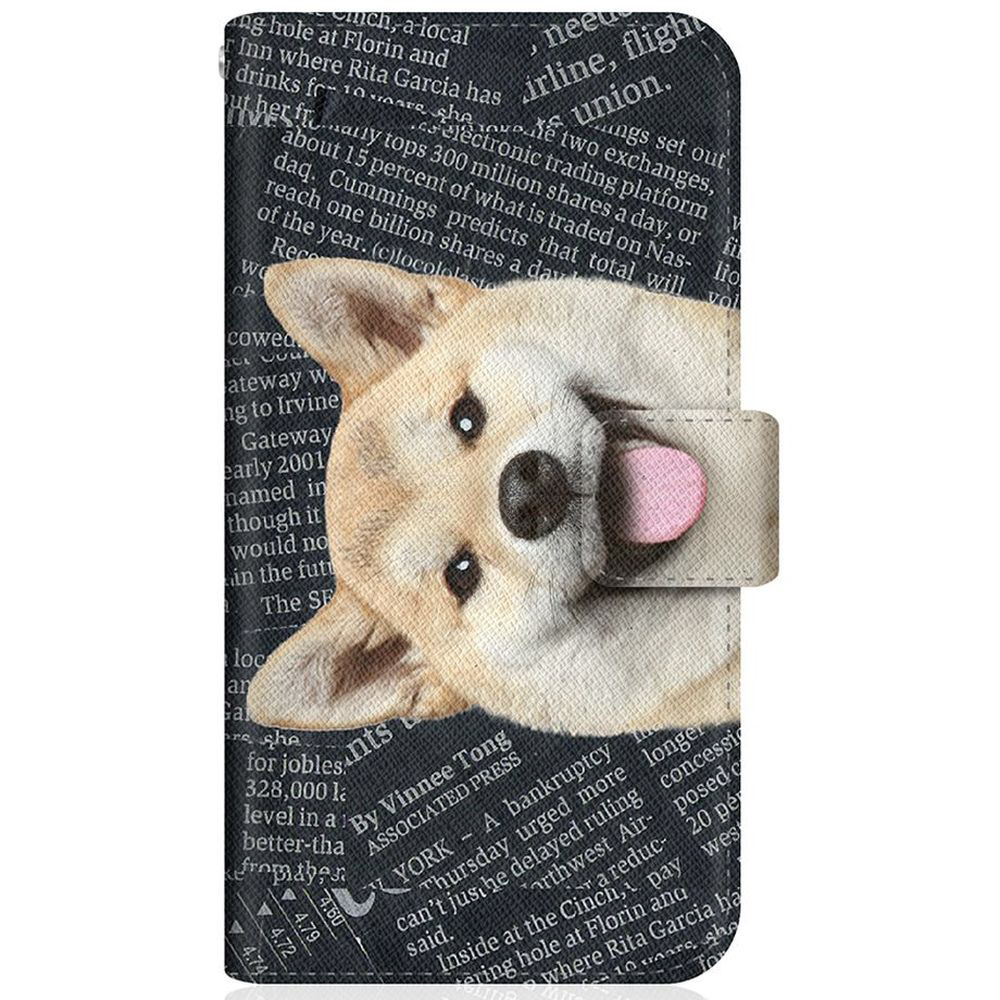 CaseMarket F-42A スリム手帳型ケース ZAKKA ZOO ノート キュート つぶらな瞳 柴犬 ワンワン ニュースペーパー 柄 ブラック F-42A-BCM2S2826-78