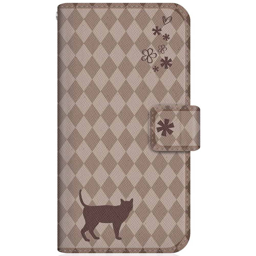 NYAGO 704SH スリム手帳型ケース NYAGO ノート フレンチ フラワー ダイアリー キャット シルエット ダイヤ柄 & なんだにゃ? チョコレート 704SH-BNG2S2455-78