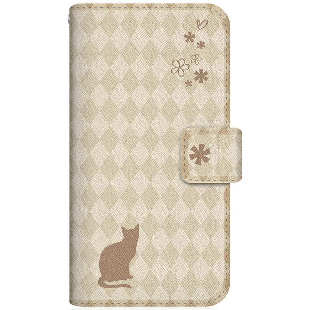 NYAGO 704SH スリム手帳型ケース NYAGO ノート フレンチ フラワー ダイアリー キャット シルエット ダイヤ柄 & おすましだにゃん。 クリーム 704SH-BNG2S2458-78