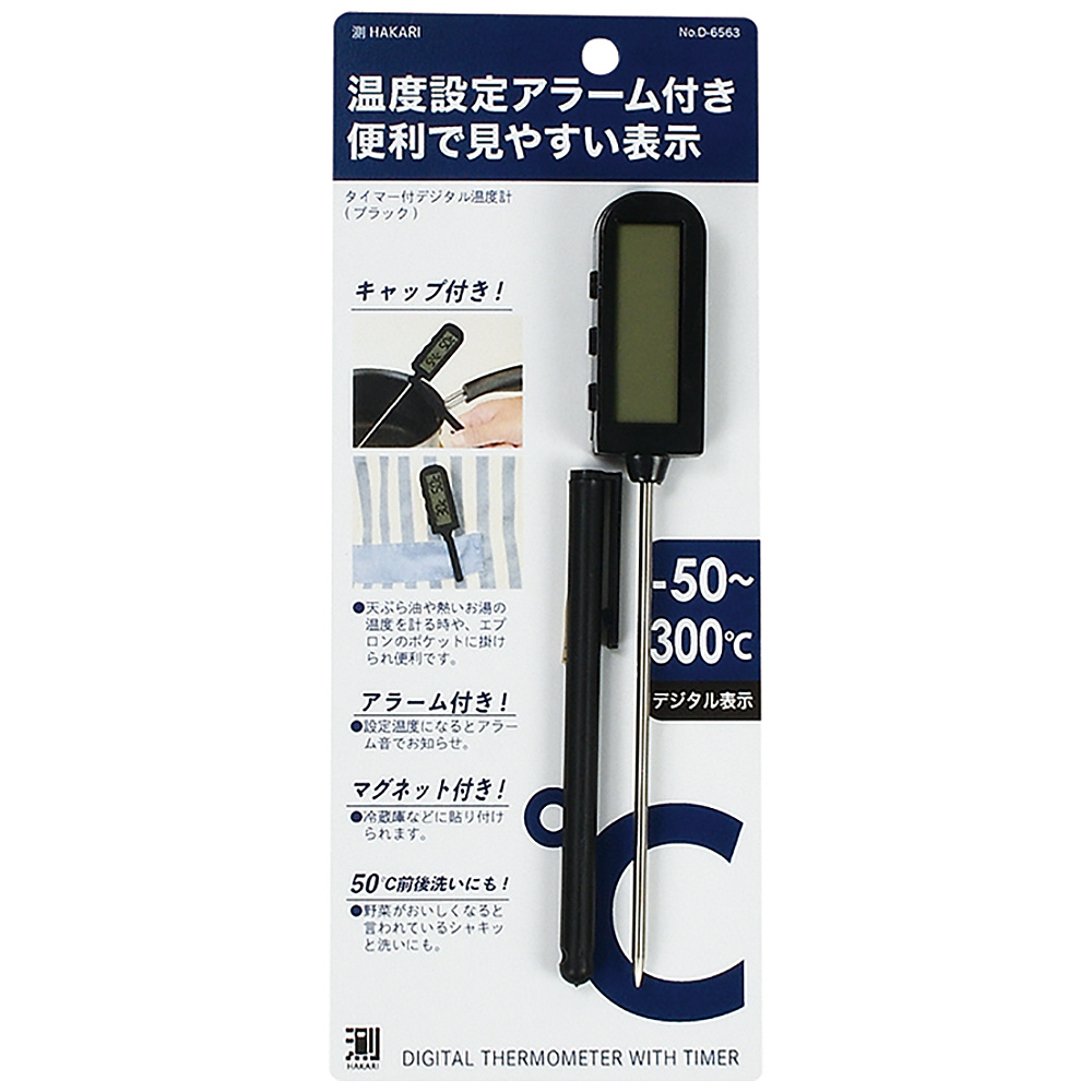 測HAKARI タイマー付デジタル温度計 ブラック D-6563