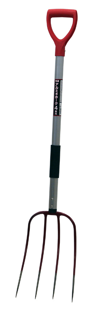 ●柄がアルミ製の4本爪タイプ。かき寄せ、すくい作業用として最適。