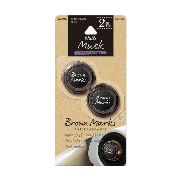 車用芳香剤 ブラウンマークスクリップ2個パック ホワイトムスク 3446