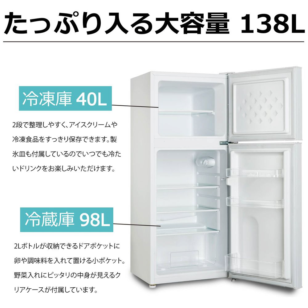 直冷式冷蔵庫 TOHOTAIYO ホワイト TH-138L2WH [138L /2ドア /右開き/左開き付け替えタイプ]