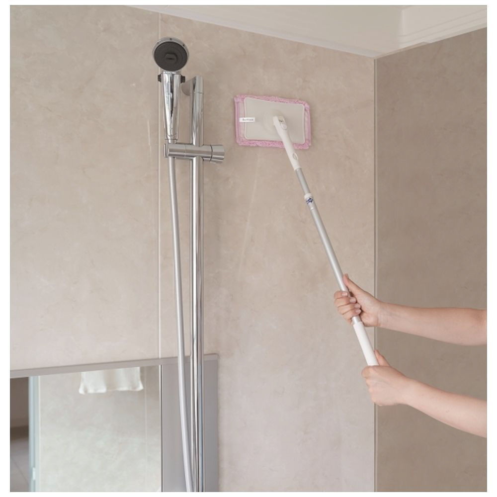 壁や天井のカビをしっかり防ぐ!マイクロファイバーのモップ糸でしっかり吸水。壁や天井のカビをしっかり予防します。ハンドル柄が伸び縮みするので今まで届きにくかった浴室の壁や天井も腰に負担をかけずにラクラク吸水。ヘッドが取り外せ、ハンディとしても使用できます。ヘッドプレートは自由に角度を変えられるので離れた場所から隅々まできれいに吸水できます。抗菌防臭加工済みなのでバイキン、ニオイの発生を防ぎます。