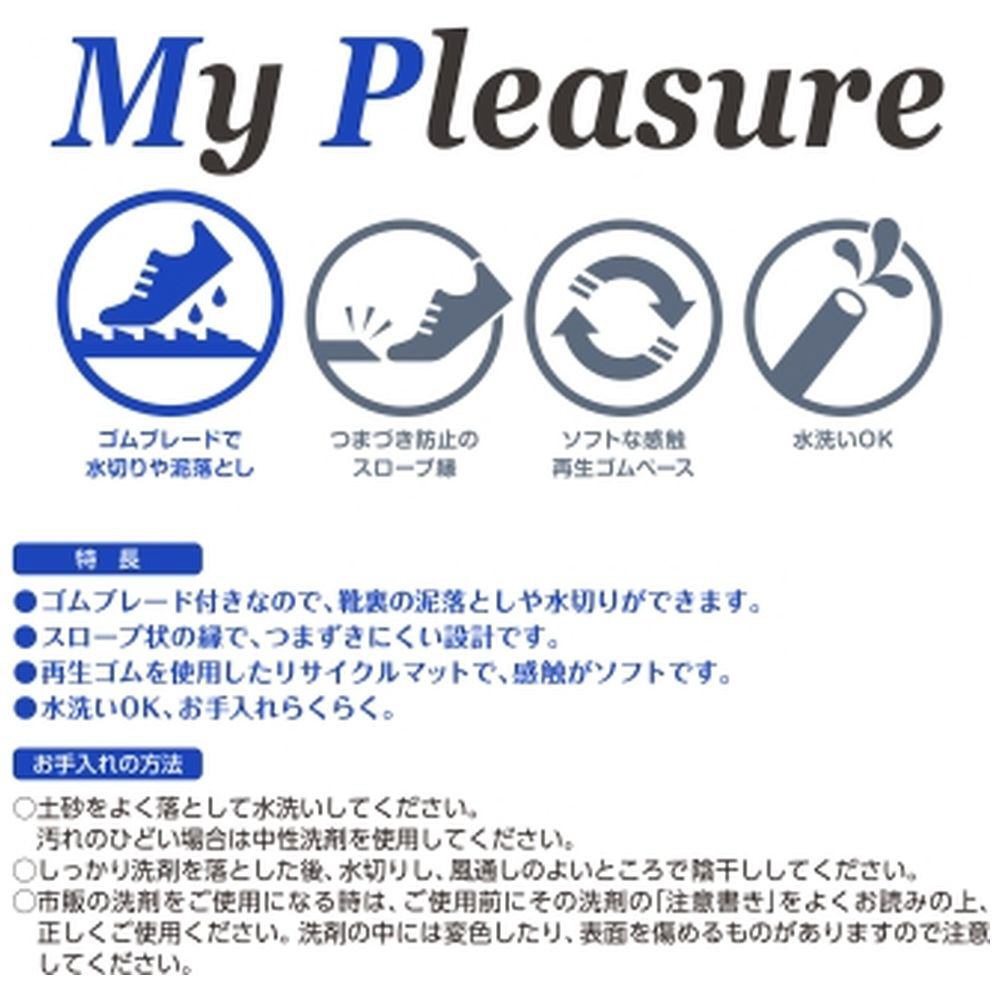 再生ゴムを使用したリサイクルマットで、感触がソフトです。水洗いOK。お手入れラクラク。