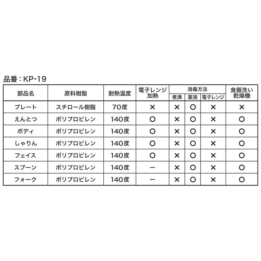 素材:プレート:スチロール樹脂、えんとつ、ボディ、しゃりん、フェイス、スプーン、フォーク:ポリプロピレン